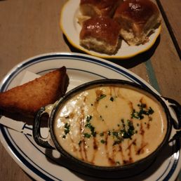 This is one of the best meals I have had in a while. The service was stellar. We consulted with our server before we ordered anything. We decided to split everything we ordered so we could try more because it all looked amazing. Started off with a nicely mixed cocktail that wasn't too sweet (Make Me Feel Good). The bread was delivered to the table hot and fresh and light and fluffy. It was hard to stop at just one roll, but didn't want to fill up. The friend oysters were crispy but not greasy. The she crab soup was flavorful. The lobster roll was one of the best I have ever had and I cannot rave enough about the housemade chips. They had a bbq flavored seasoning on them. We finished with the blueberry pudding cake which came server recommended and it was delicious. The ambiance was hip and modern although it is very loud once the restaurant fills up. It was sometimes hard to hear what the server was telling us. This place is a must for your Atlanta restaurants to try list.